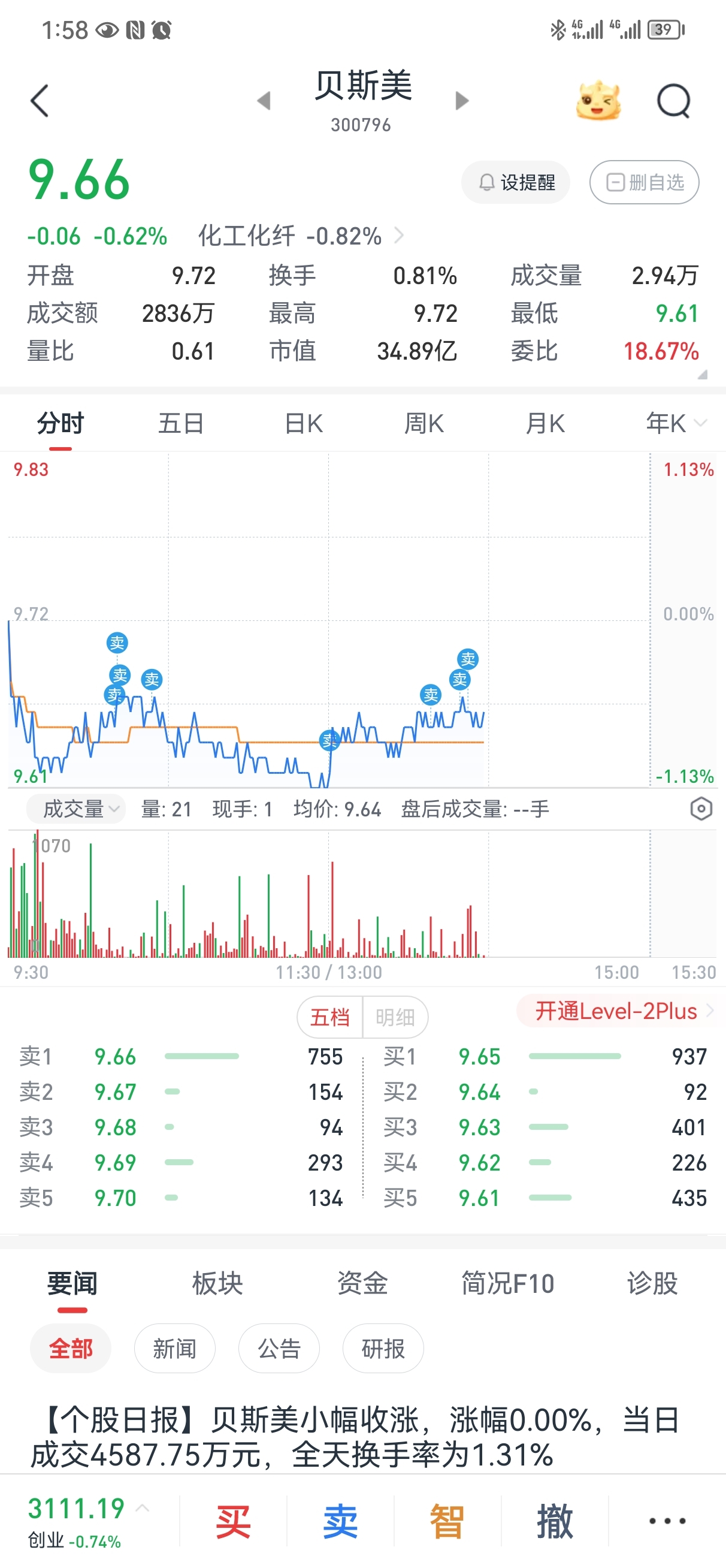 $贝斯美(SZ300796)$ 我跑了,可以涨了,这是铁律。60000股亏了4万多,留下的兄弟发财