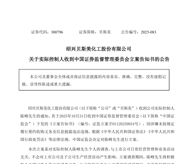 买入时间:2023年6月19日至2025年10月31日(立案公告日)期间买入贝斯美股票 。