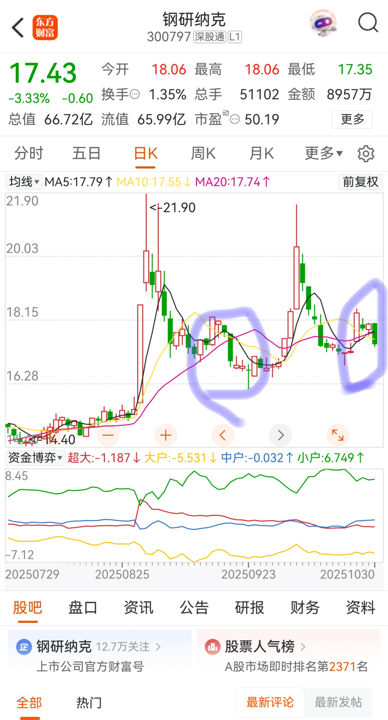 $钢研纳克(SZ300797)$ 两个下跌位置非常相似,快跑吧发套了