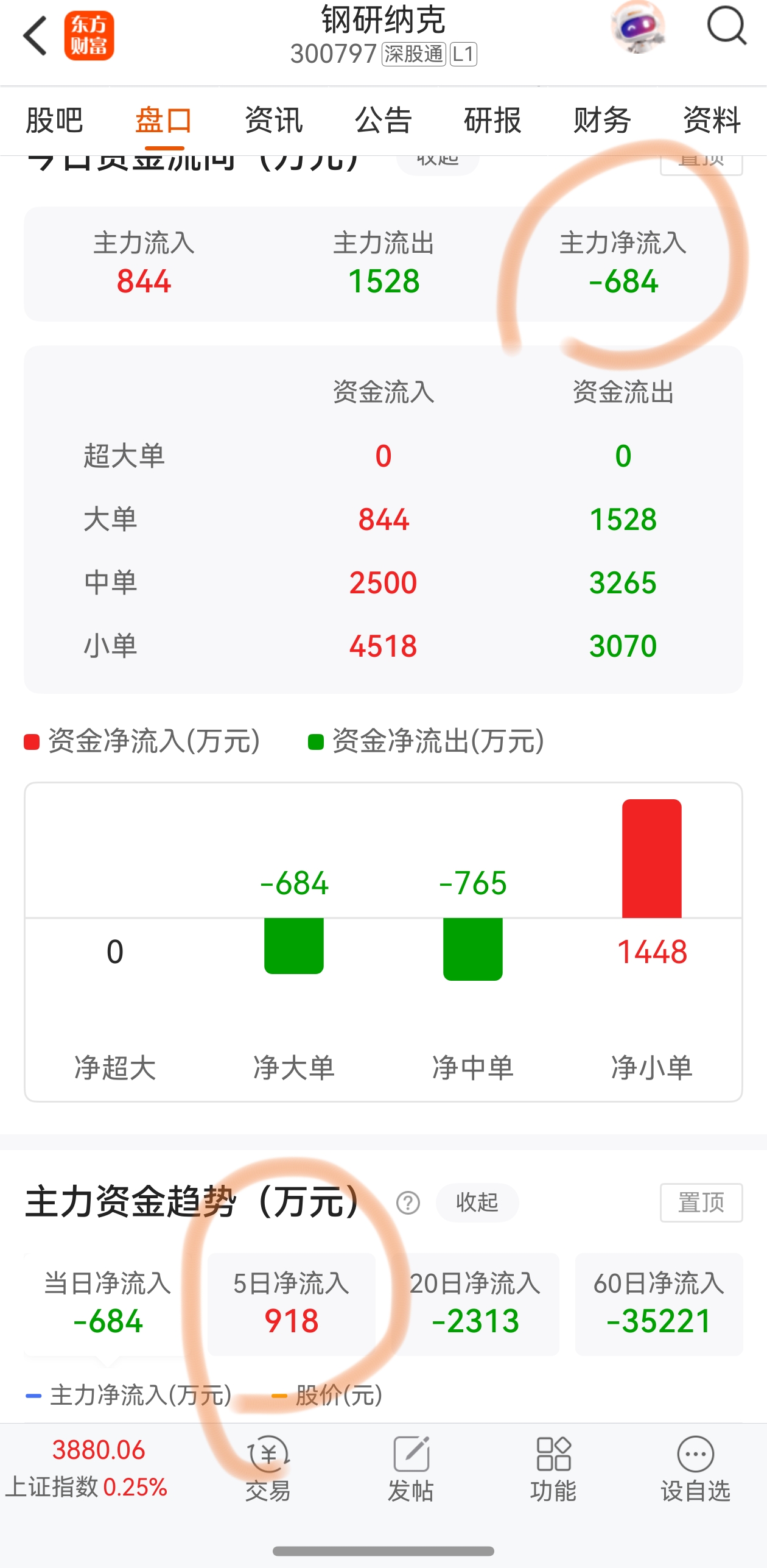 $钢研纳克(SZ300797)$ 5日净流入持续减少,说明主力持续撤出