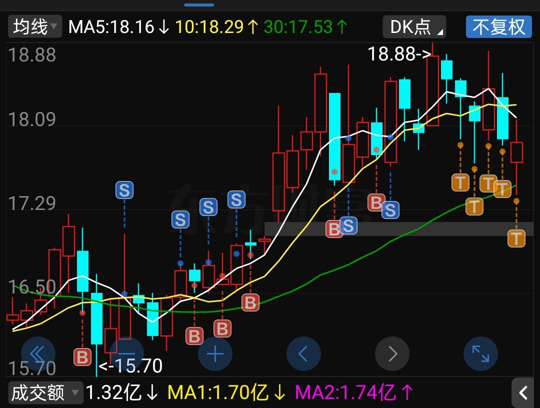 天天都是长长的影线,连T了一周,成本下来不少啊!