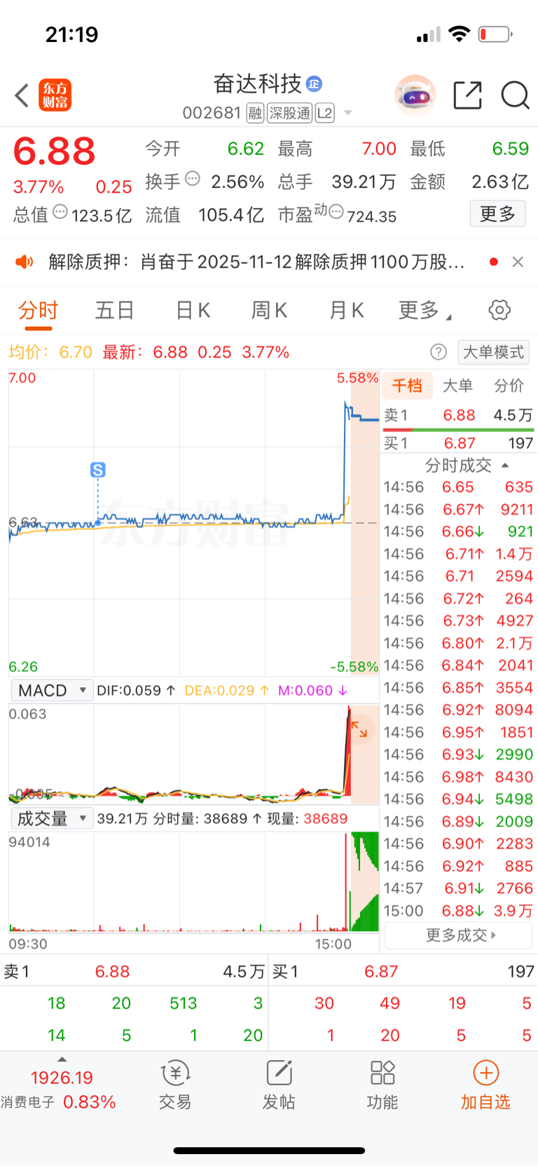 $锦鸡股份(SZ300798)$ 兄弟们我潜伏了半个月今天被洗走了