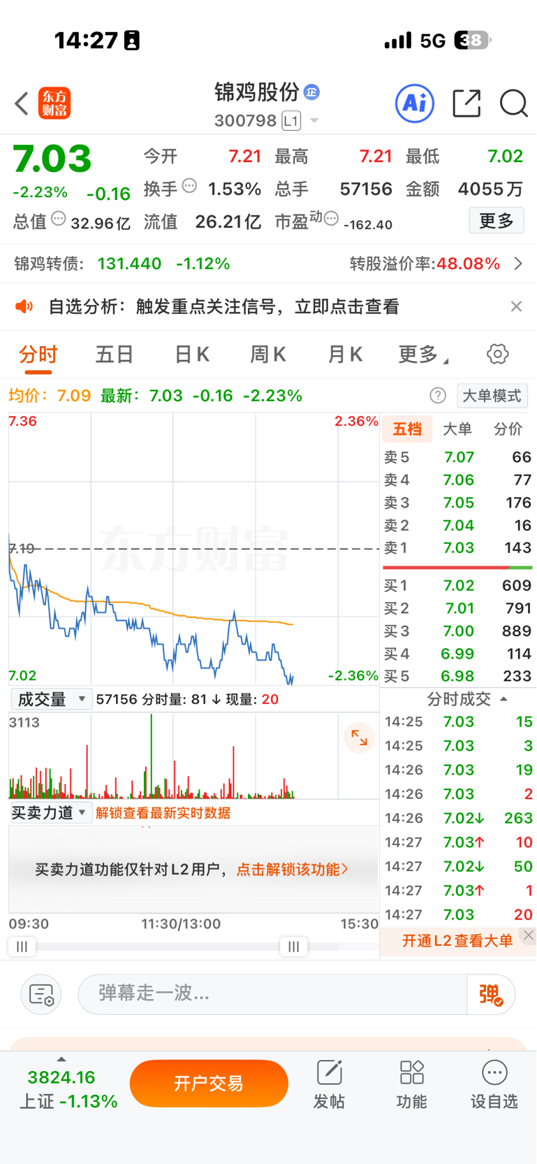 $锦鸡股份(SZ300798)$ 还差4分就到6块