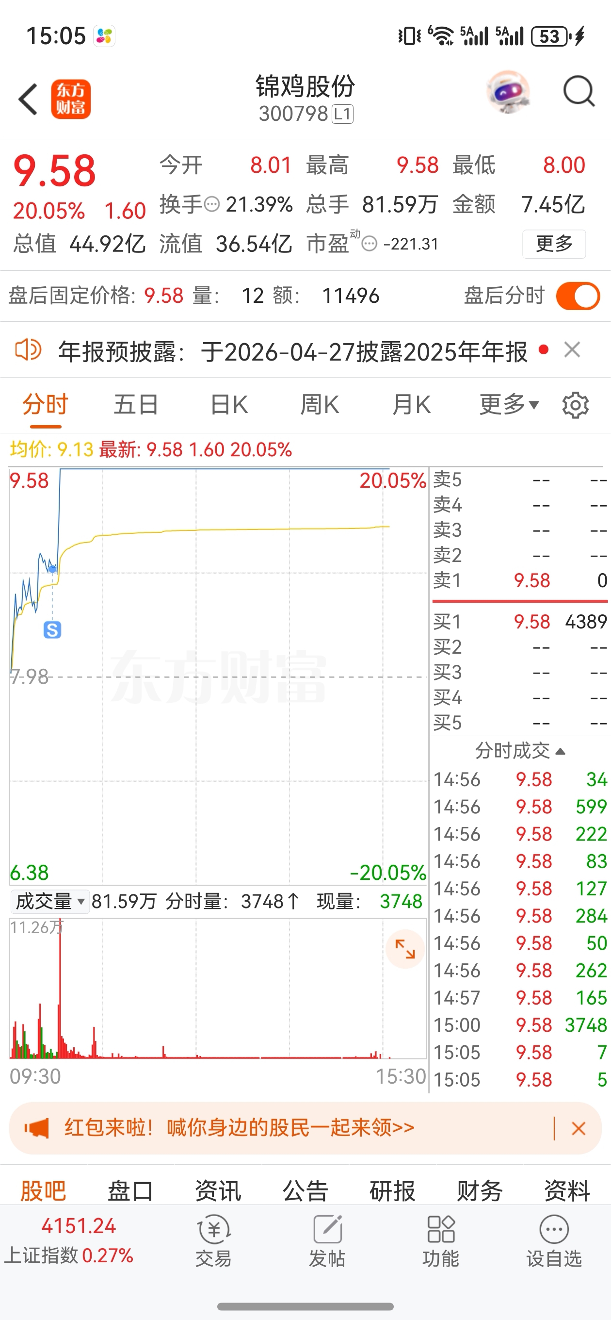$锦鸡股份(SZ300798)$ 就盯着我手里的这点筹码,有意思吗?