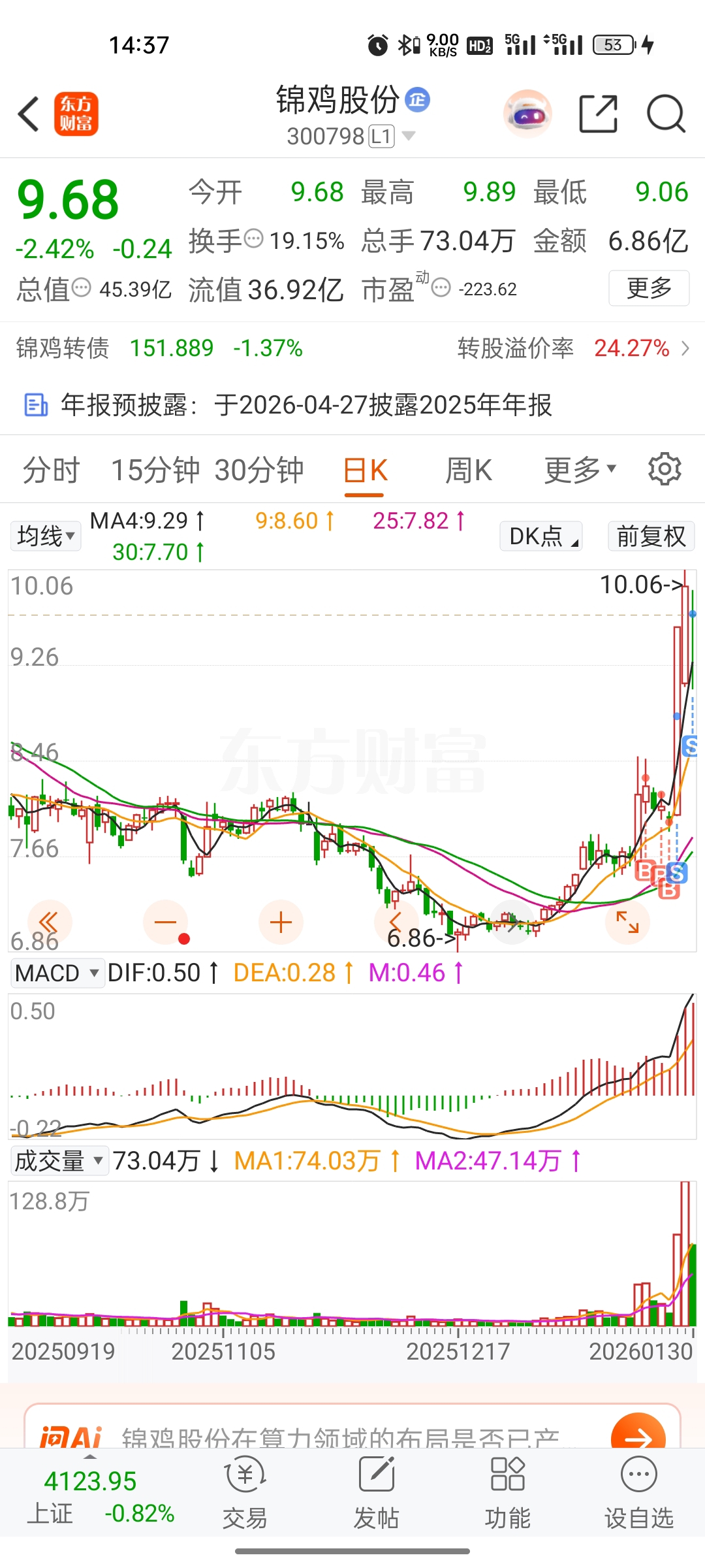 $锦鸡股份(SZ300798)$ 主力良心啊,下次再见