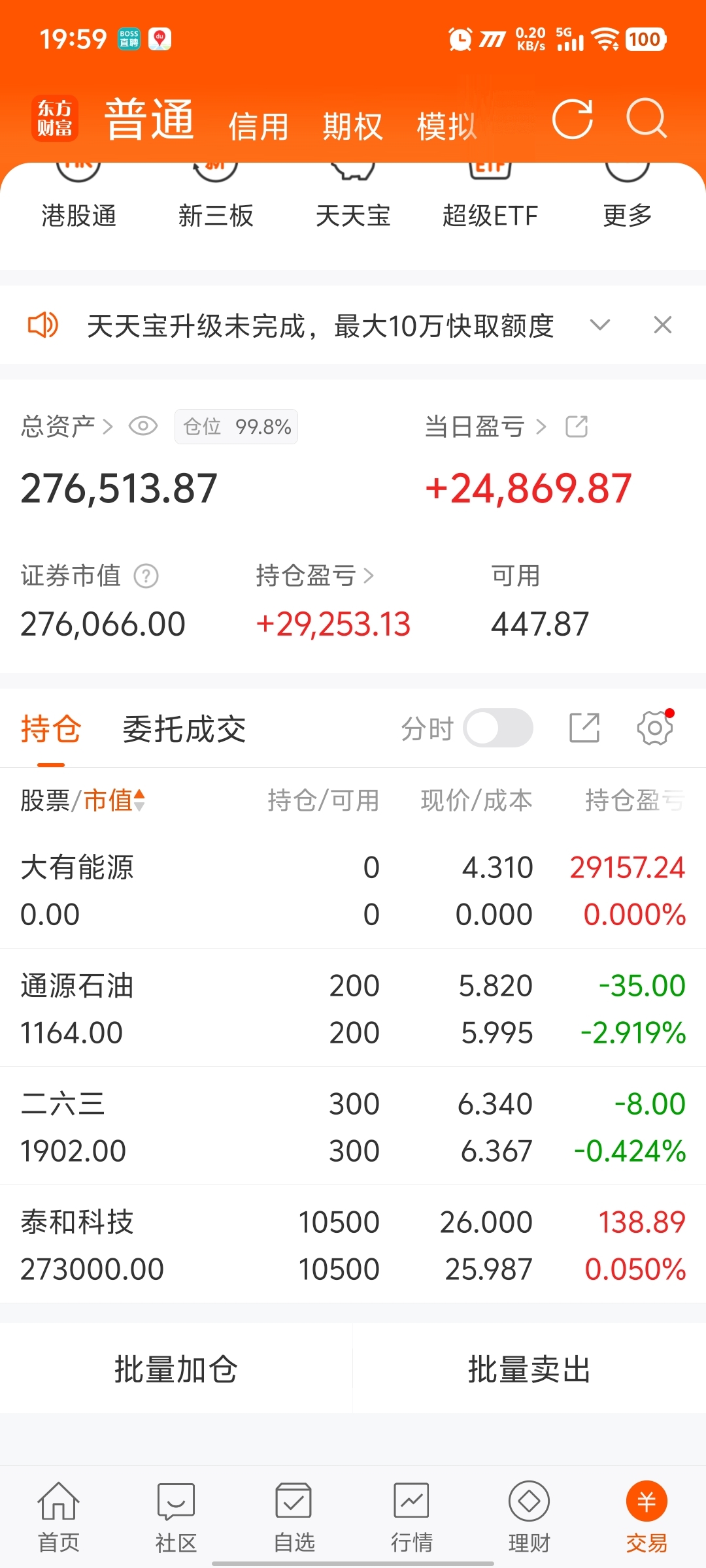 各位兄弟,泰和科技已经站稳了,顶点左侧涨停不跌破,稳了这几天绝对有一波大冲高,各位拿好就行,本人全仓26万买进来一点都不带慌的各位,稳住拿好等待起飞就行,最近半导体科技股已经利好不断,昨天的一波只是回调,周一肯定起飞。拿好就行了各位