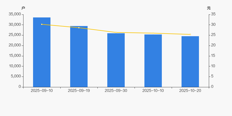 自2025年9月10日以来,公司股东户数连续4期下降,截至目前减幅为26.97%。2025年9月10日至2025年10月20日区间股价下降16.09%。
