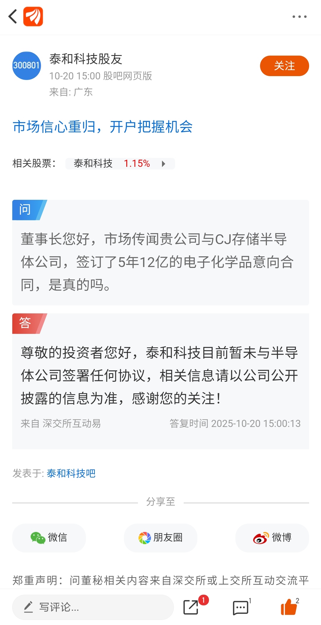$泰和科技(SZ300801)$ 泰和科技供货长江存储,存储芯片新的龙头
