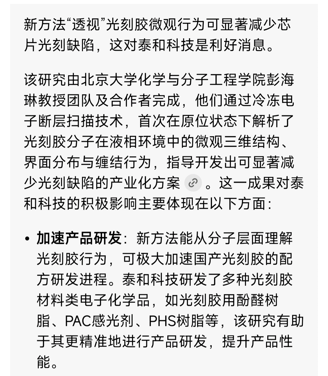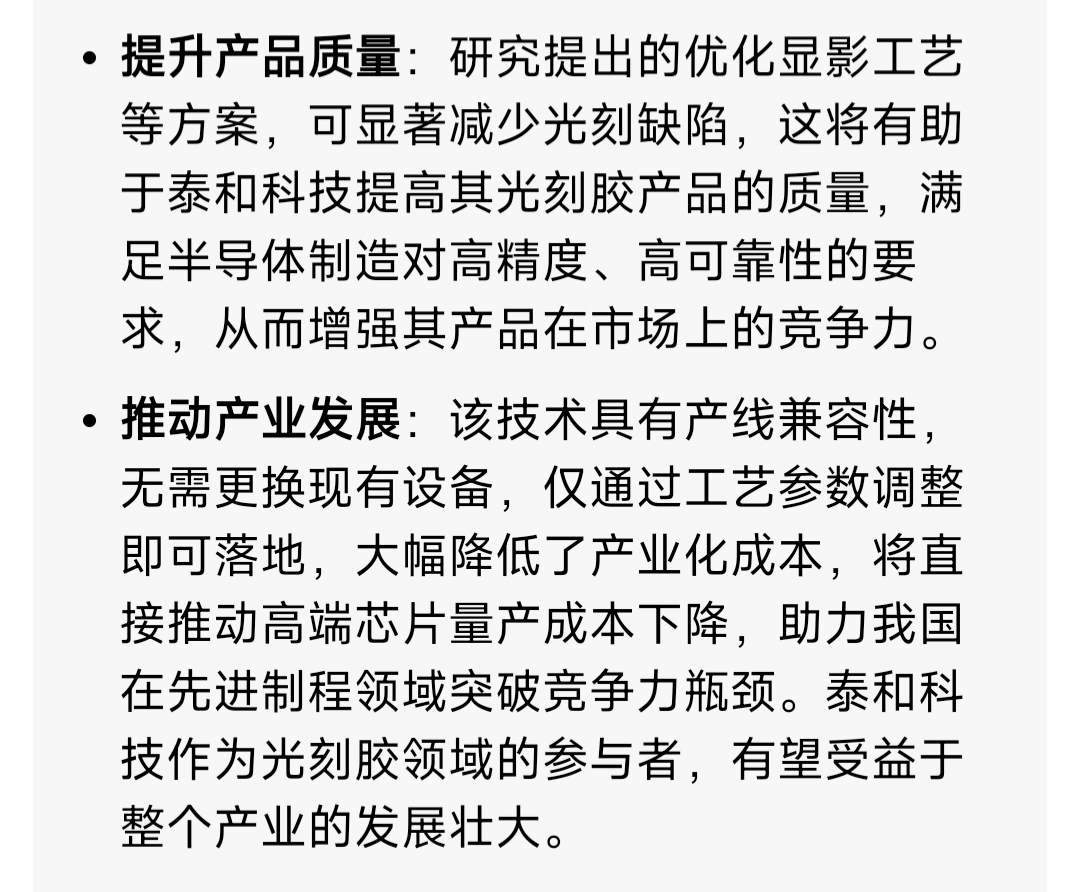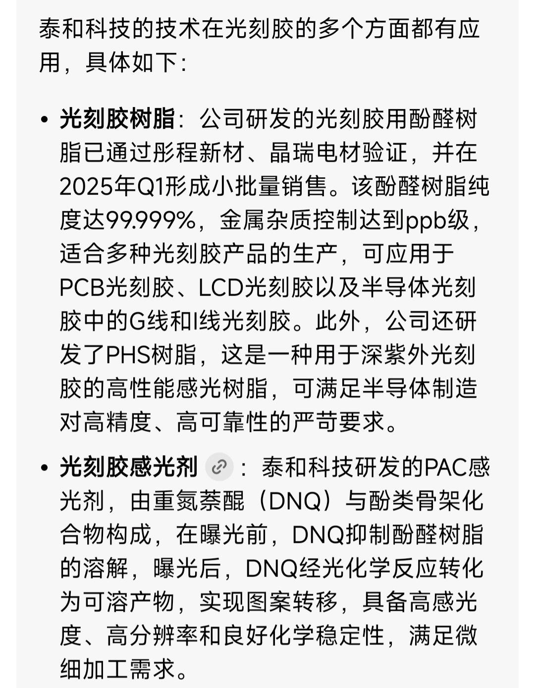 不必多言,看看泰和科技对光刻胶的贡献和技术,下周起飞!