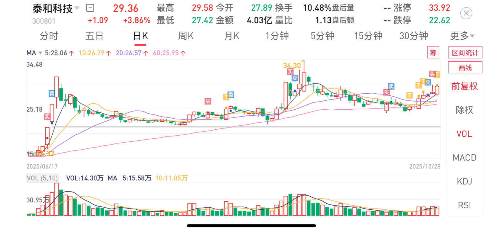 $泰和科技(SZ300801)$ 还以为你不来了、终于来了