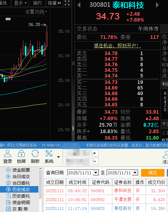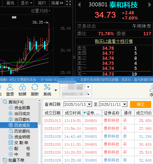 昨天加仓300801泰和科技今天早盘拉升12个多点,今天早盘继续加仓最近一直在加