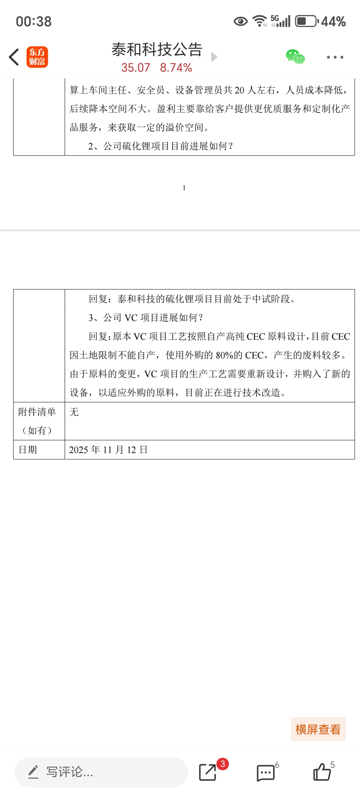 $泰和科技(SZ300801)$  今天的公告,利好利空自己判断