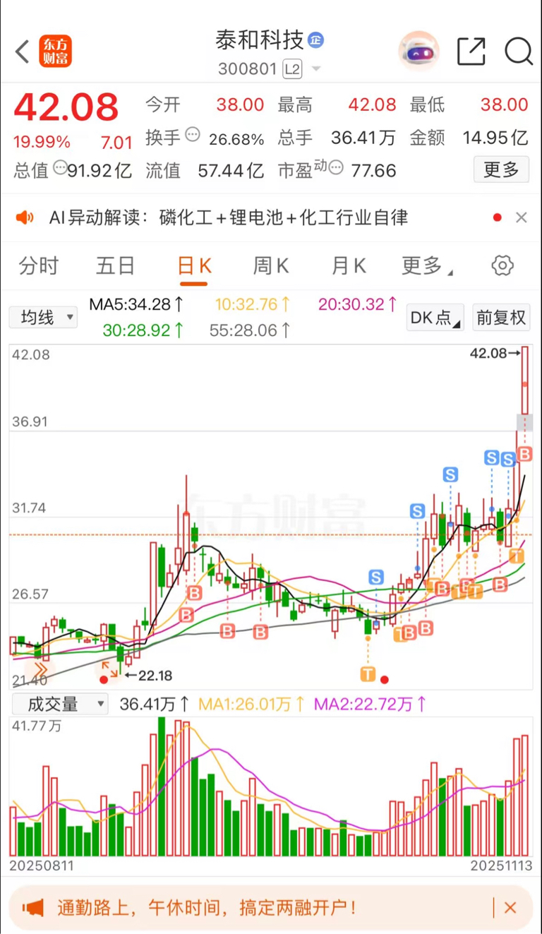 $泰和科技(SZ300801)$ 功夫不负有心人,耐心是财富,虽然有时候做T做飞了,但谁都不是神算子巴菲特,都有失误的时候,总之结果是满意的就很OK,在股市就是考验个人心态,不已涨喜,不已跌悲,炒股是持久战,不是一朝一夕的事!只要长期下来保持百分之七十五以上的胜率就可以了!