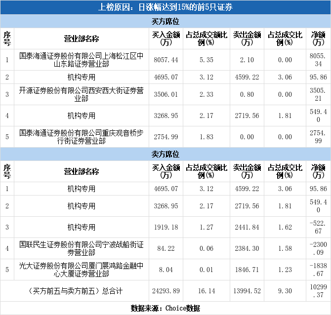 多主力现身龙虎榜,泰和科技涨停(11-13)