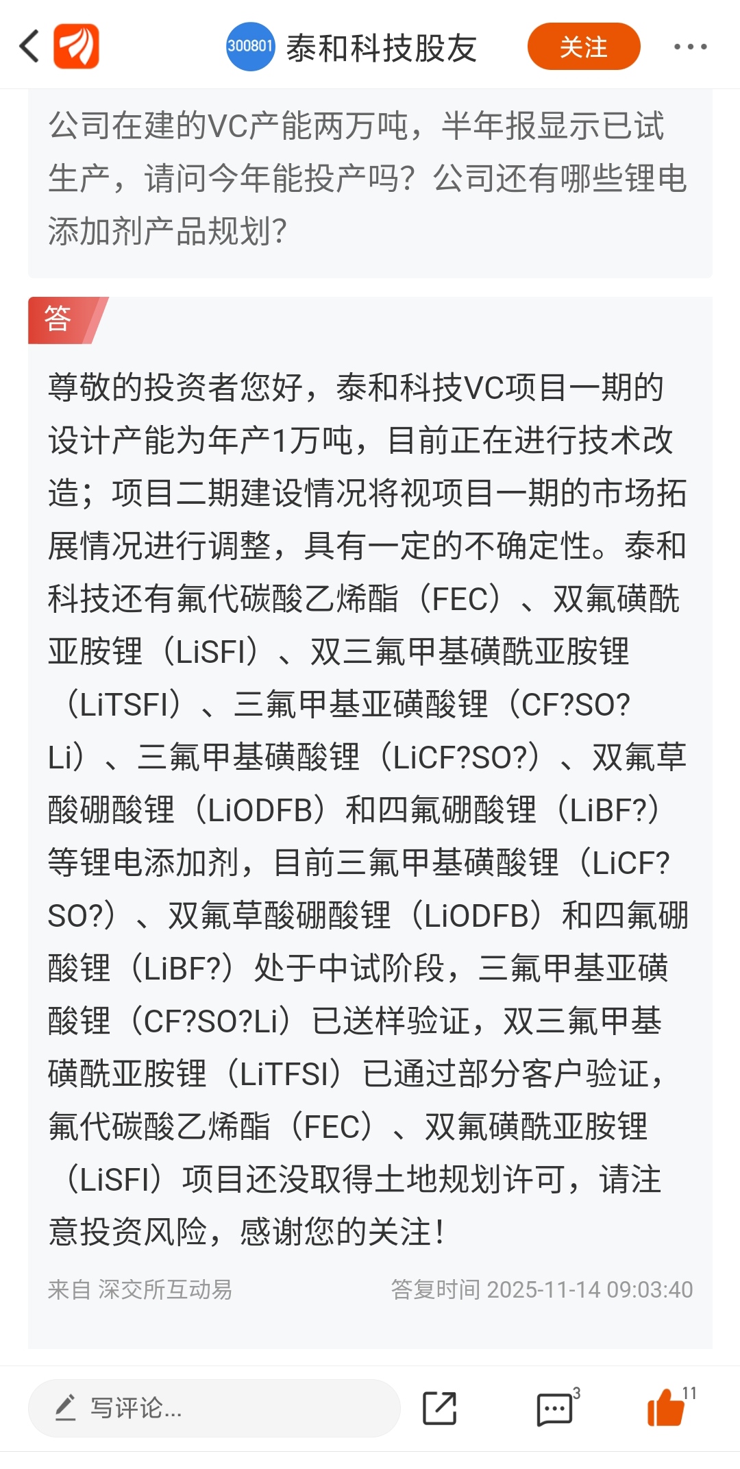 泰和科技的VC和LiSFI、硫化锂等固态电池电解质全部价格暴涨,成长空间十分广阔
