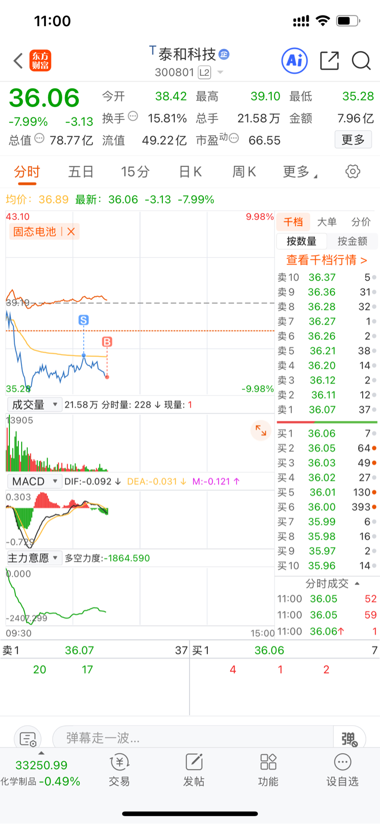 $泰和科技(SZ300801)$ 做T,成本打到38
