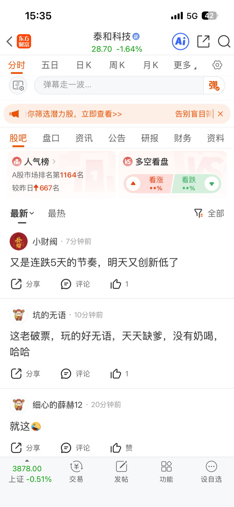 $泰和科技(SZ300801)$ 热度一下怎么这么高了 不是好事啊