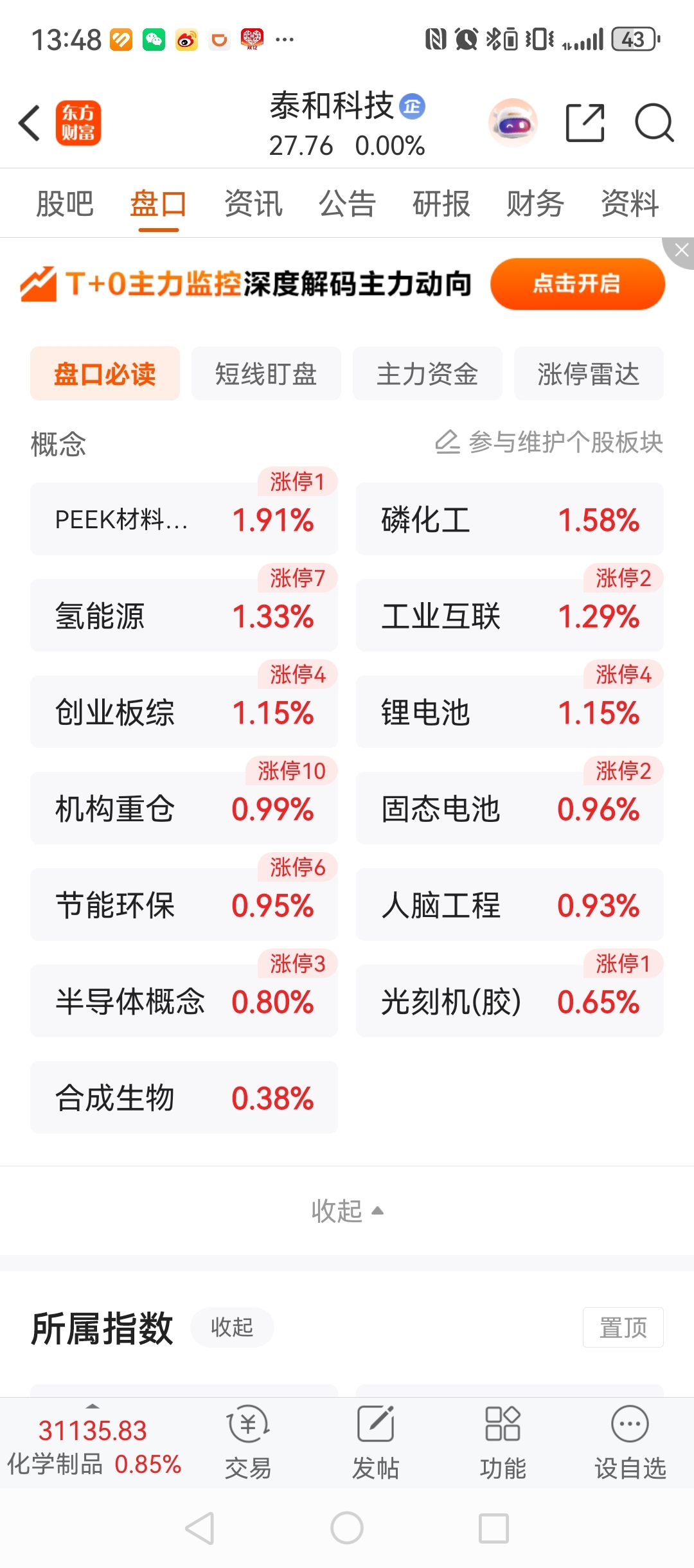 $泰和科技(SZ300801)$ 都跌成这样了。大盘跟板块都这么厉害,他还不能红。