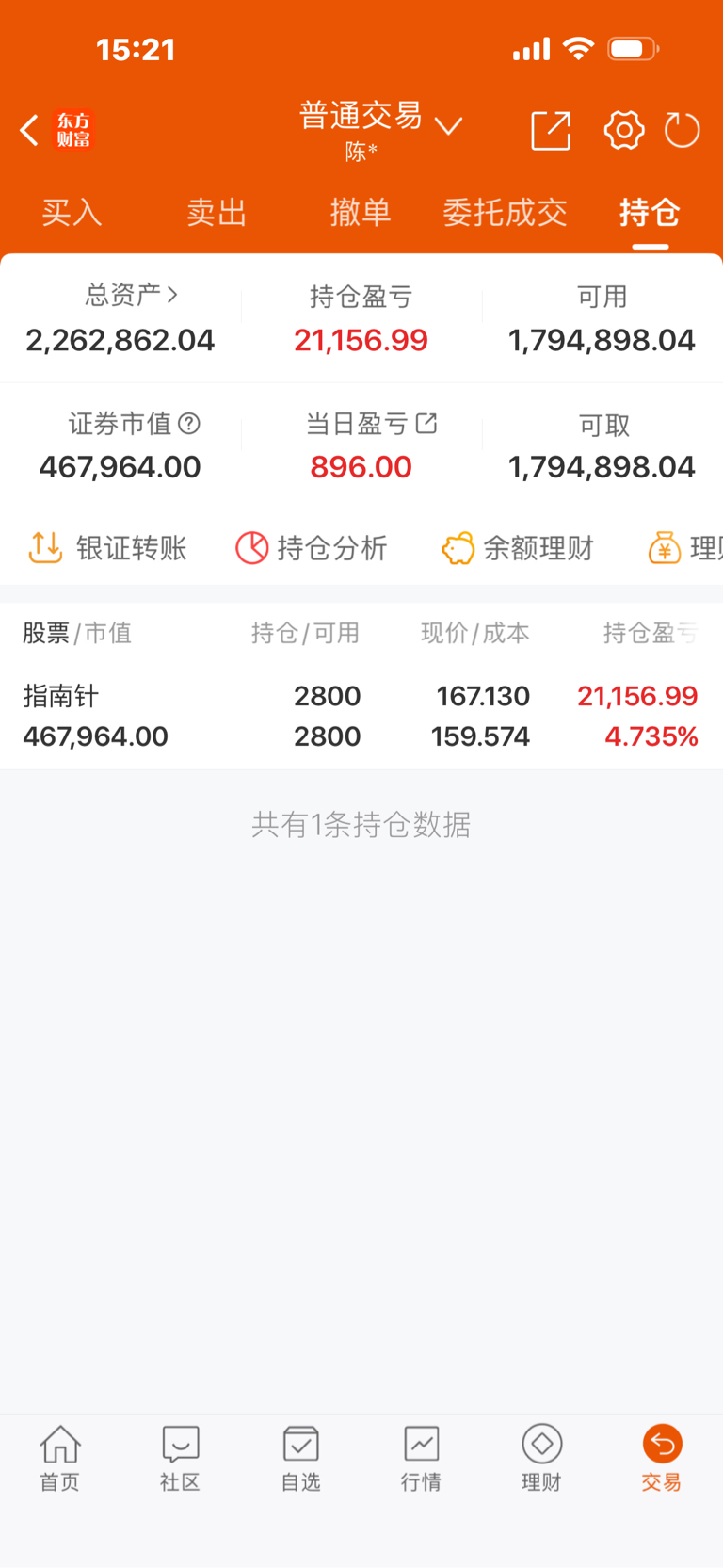 今日无操作:持有:指南针