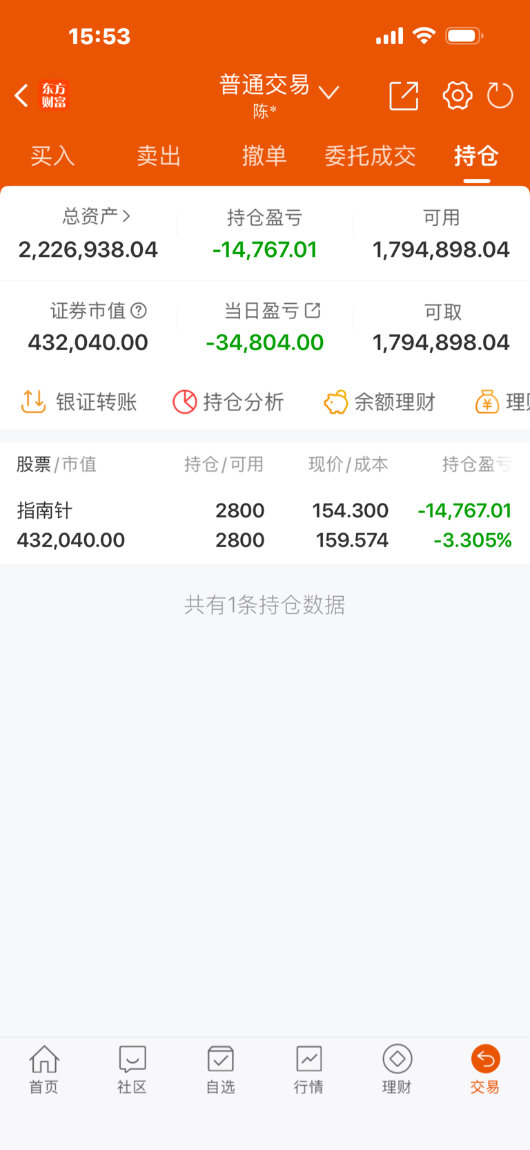 陈姐实盘记录分享第125天(10月10日周五)今日无操作:持有:指南针声明一下这