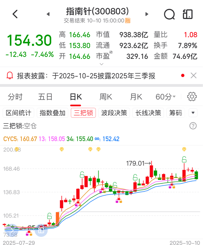 $指南针(SZ300803)$ 三把锁提示,拉高就跑,别回头