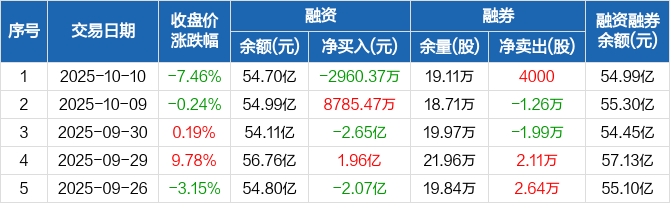 指南针:融资净偿还2960.37万元,融资余额54.7亿元(10-10)