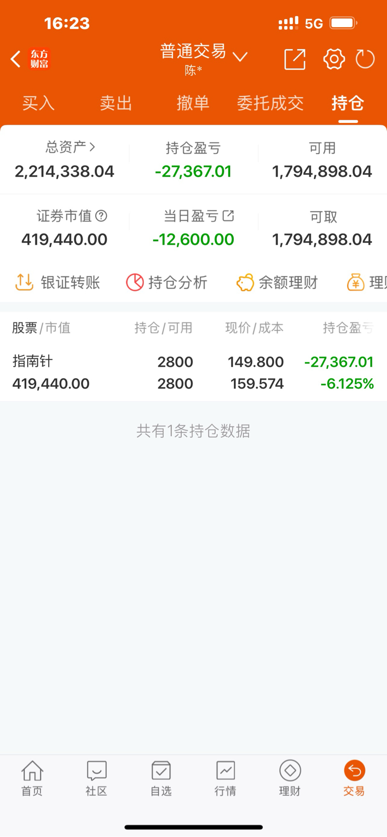 陈姐实盘记录分享第126天(10月13日周一)今日无操作:持有:指南针声明一下这