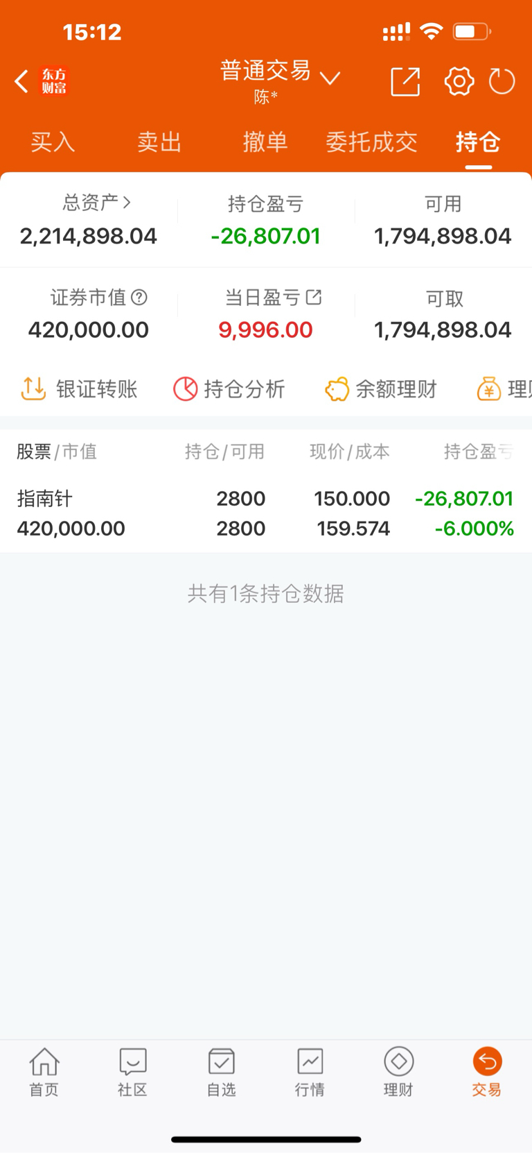 陈姐实盘记录分享第128天(10月15日周三)今日无操作:持有:指南针声明一下这