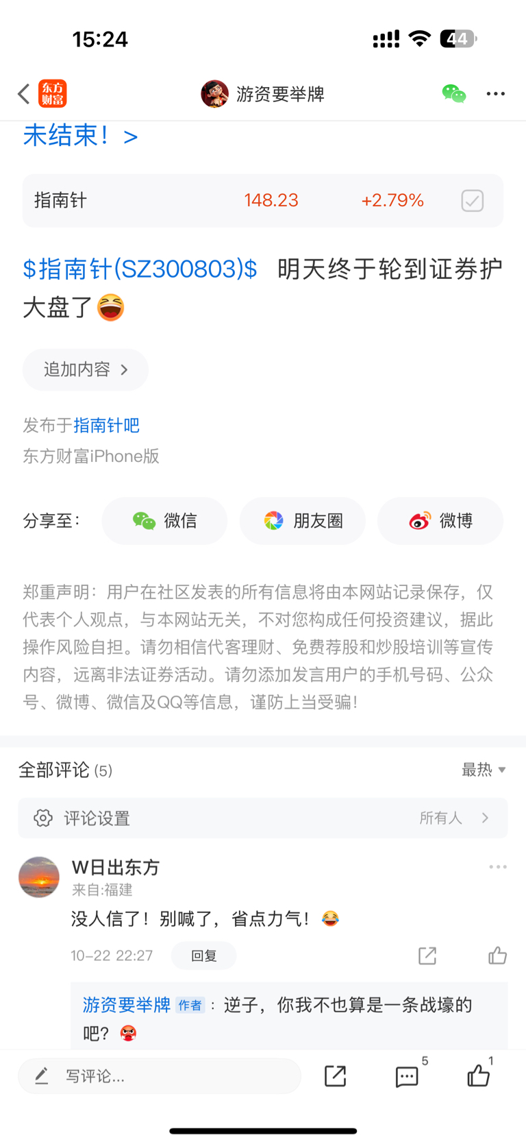 温馨提示: 1.根据《证券法》规定,禁止编造、传播虚假信息或者误导性信息,扰乱证券市场;2.用户在本社区发表的所有资料、言论等仅代表个人观点,与本网站立场无关,不对您构成任何投资建议。用户应基于自己的独立判断,自行决定证券投资并承担相应风险。《东方财富社区管理规定》