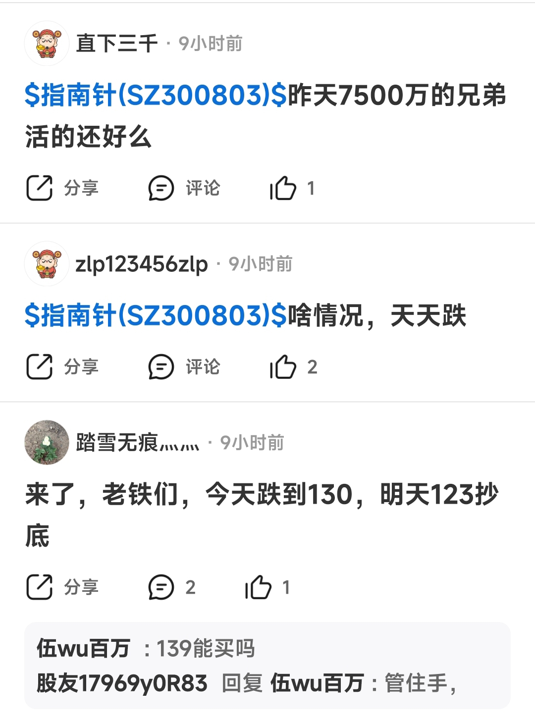 $指南针(SZ300803)$ 昨天下午7500万的兄弟晚上已经在数钱了,而你却割在早上140,请把吧里的黑子全拉黑