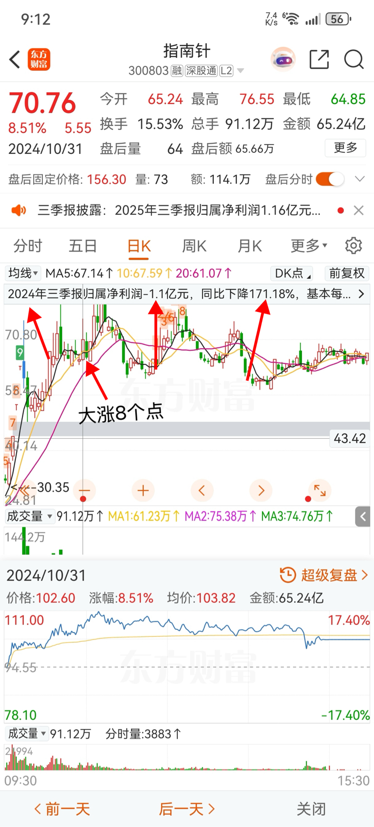 去年亏损6000万涨8个点~今年盈利1.8个亿涨几点