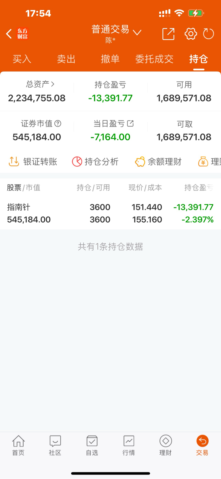 今日无操作:持有:指南针