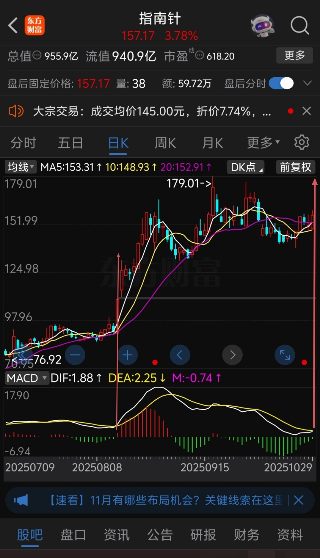 当看到指南针日线Macd变红之时,就是量化抢筹涨停之时。涨停之后,第二天还是涨停,因为要带东财。