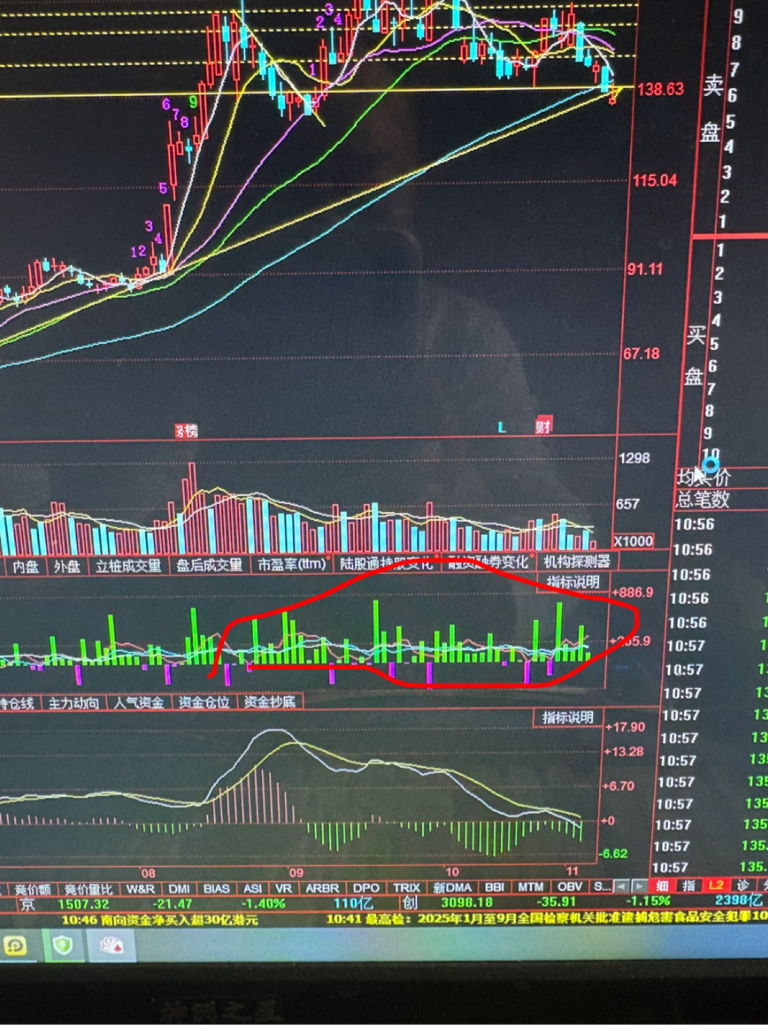 绿色代表散户资金流入这段时间太夸张了一堆堆的进来接盘