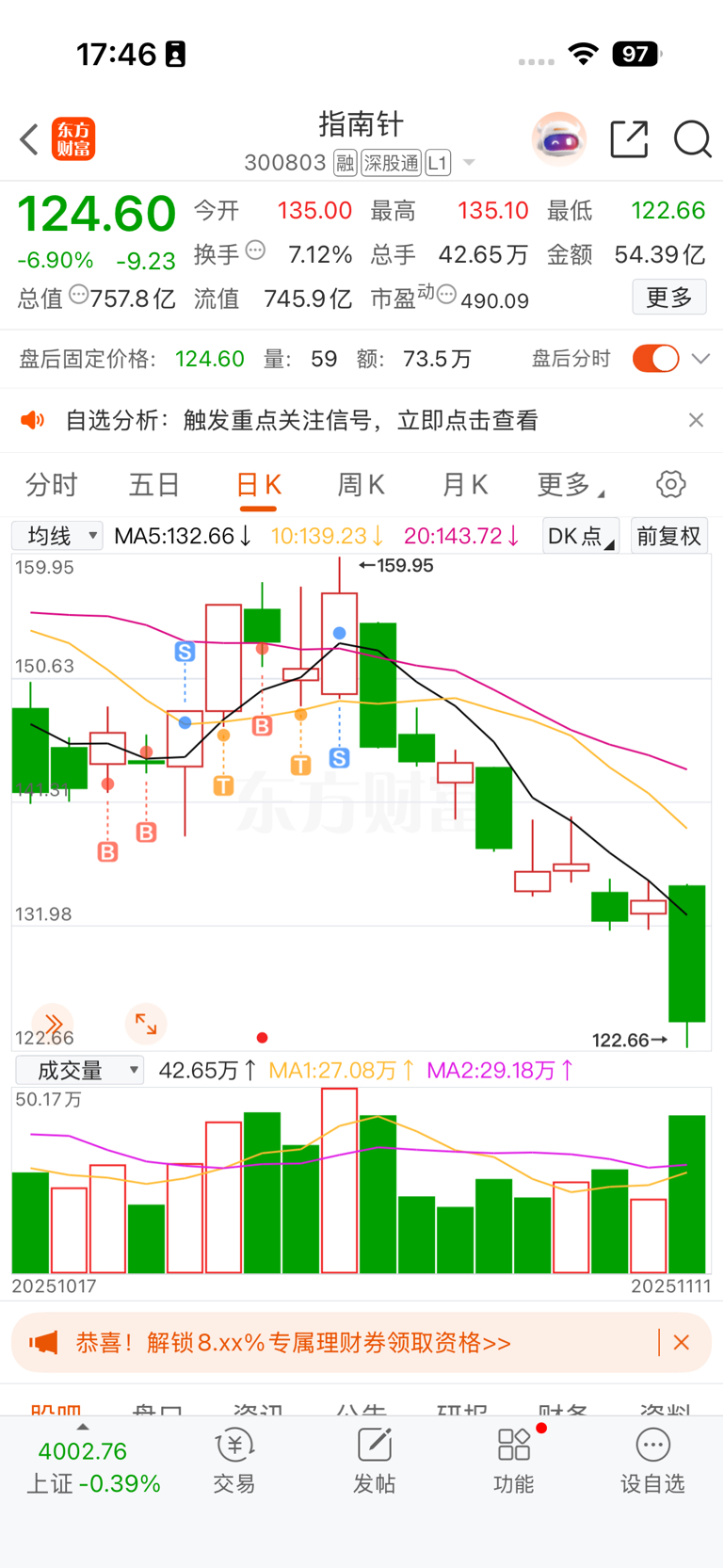 $指南针(SZ300803)$ 还好跑的快