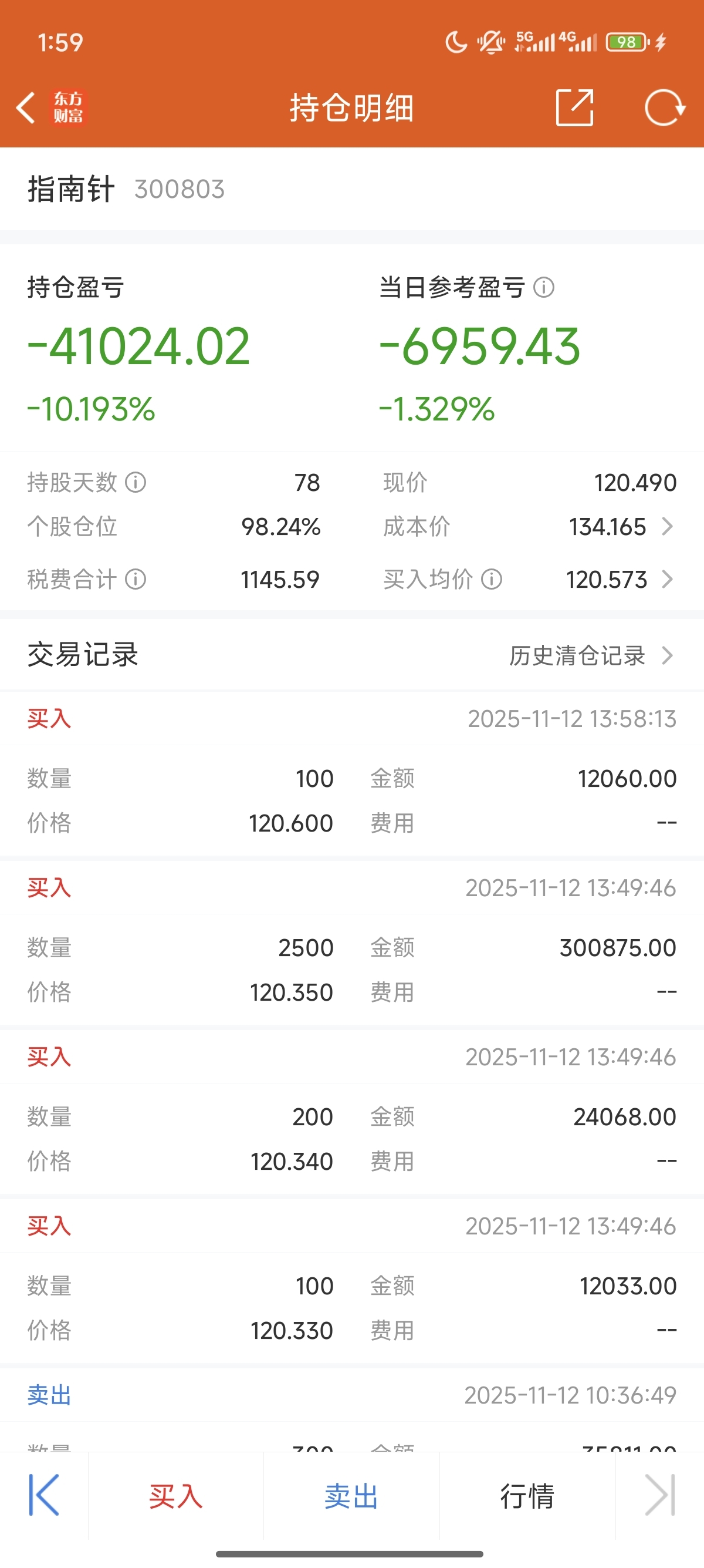 $指南针(SZ300803)$ 今天补齐全仓了,最高点跌下来三分之一呢,那就继续坚持一下下吧