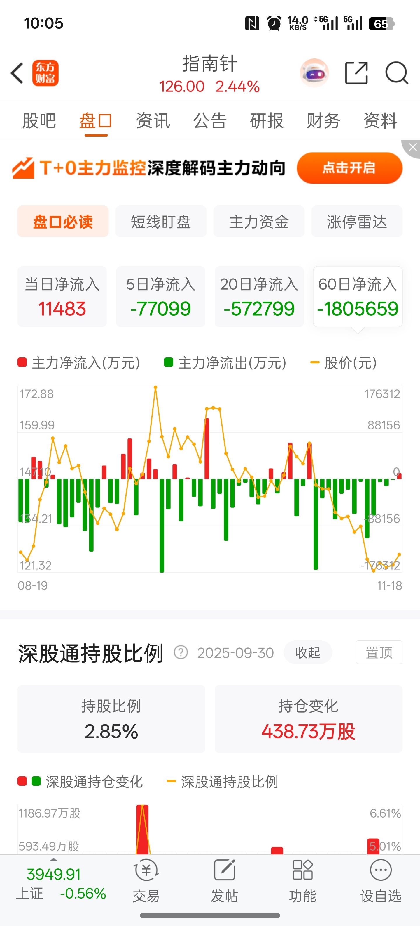 $指南针(SZ300803)$ 60个交易日主力跑了180亿,估计差不多集中营了