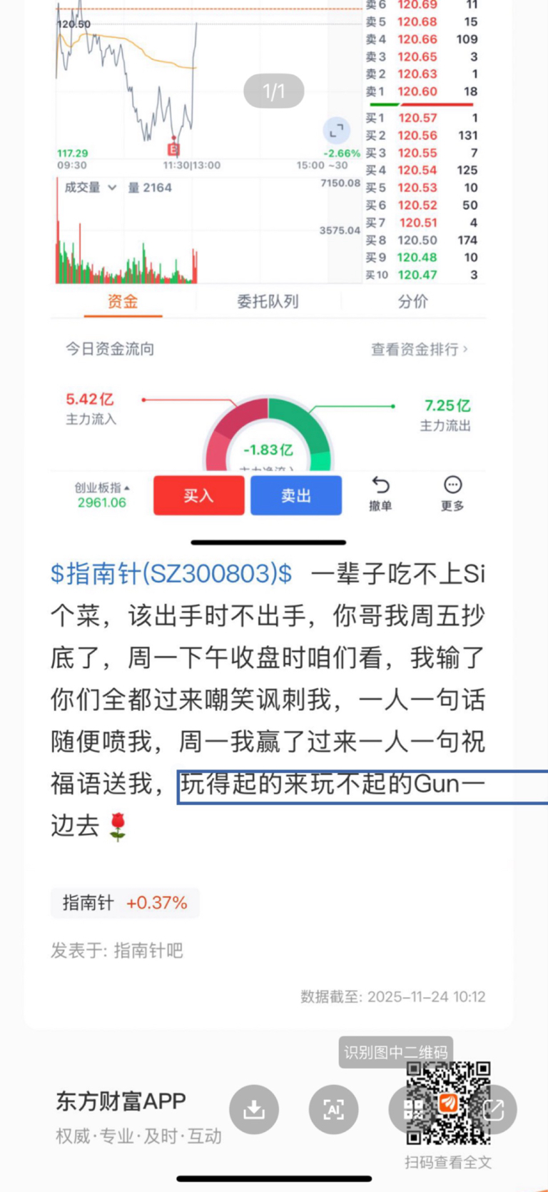 $指南针(SZ300803)$ 来吧,玩得起每个人跟帖送我一句祝福,大家一起发财,是男人就说话算话哈,玩不起的永远7不了3,买啥亏啥