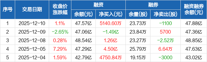 指南针:融资净买入5140.6万元,融资余额47.57亿元(12-10)