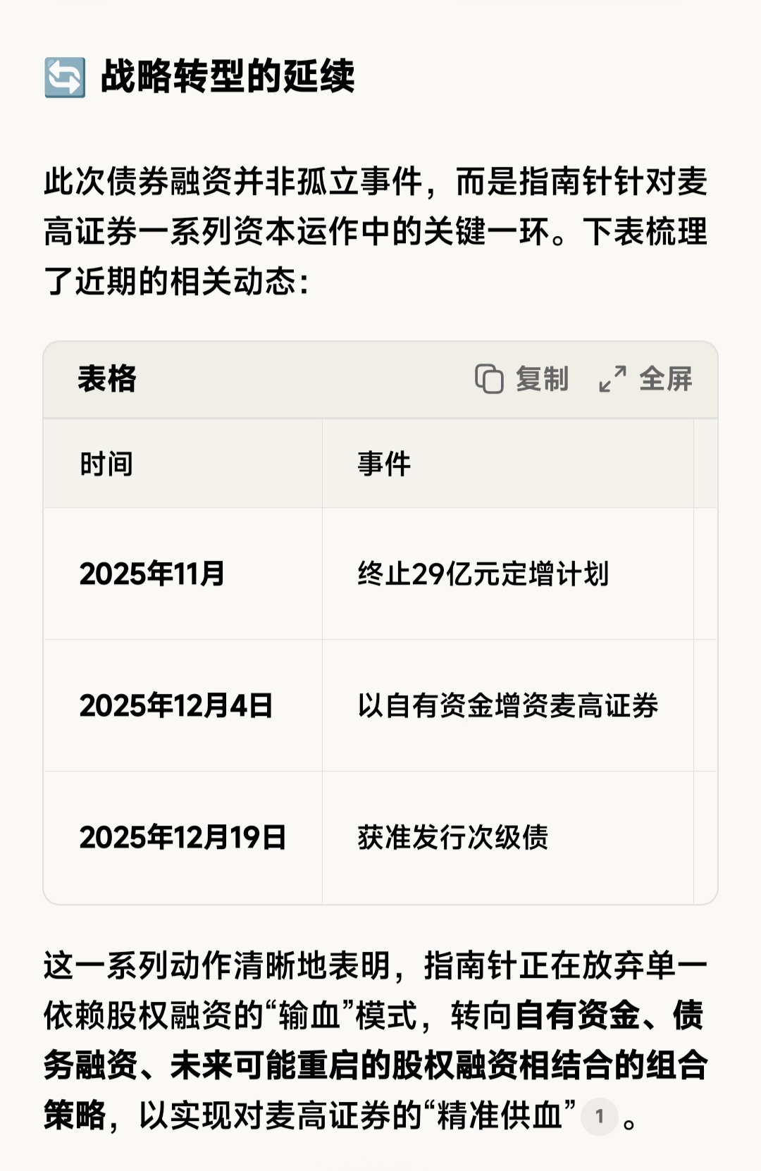 整体而言,这一系列动作对指南针是中长期利好,既夯实了证券业务的资本基础,也优化了融资策略,为麦高证券的发展扫清了资本层面的关键障碍,推动公司向综合型金融服务商转型。
