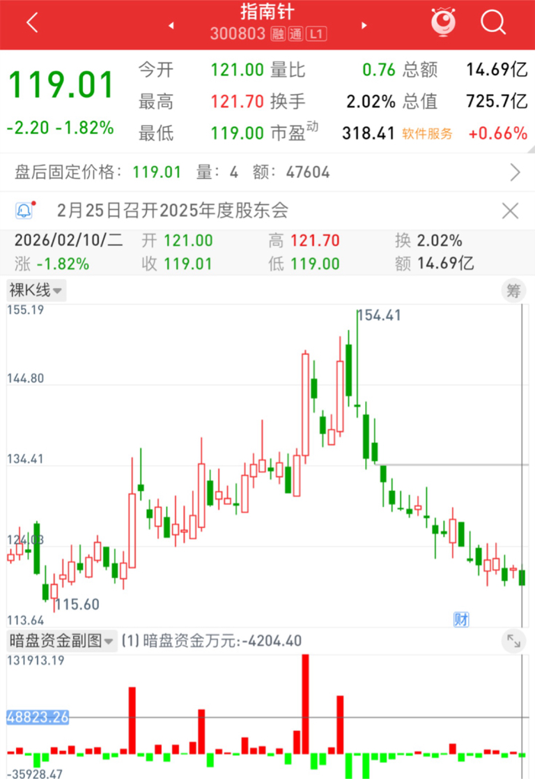 $指南针(SZ300803)$ 今日暗盘资金流出4000多万