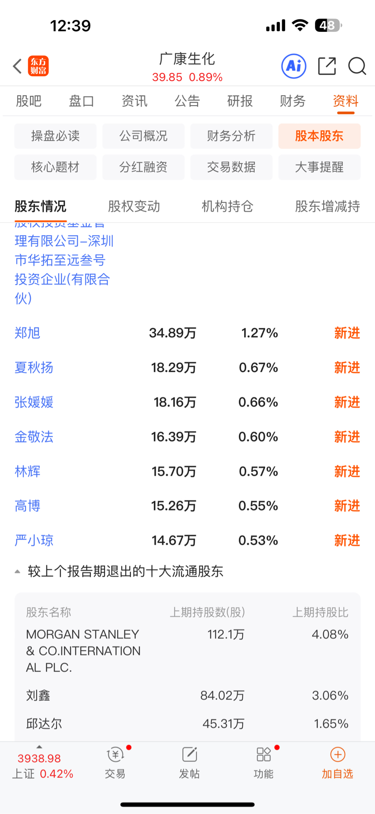 $广康生化(SZ300804)$  十大流通股东这些新进的人名都是被套的散户嘛