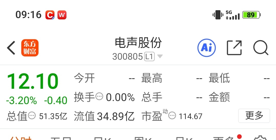 $电声股份(SZ300805)$ 这竞价真攒劲,处处透露着垃圾股的气质