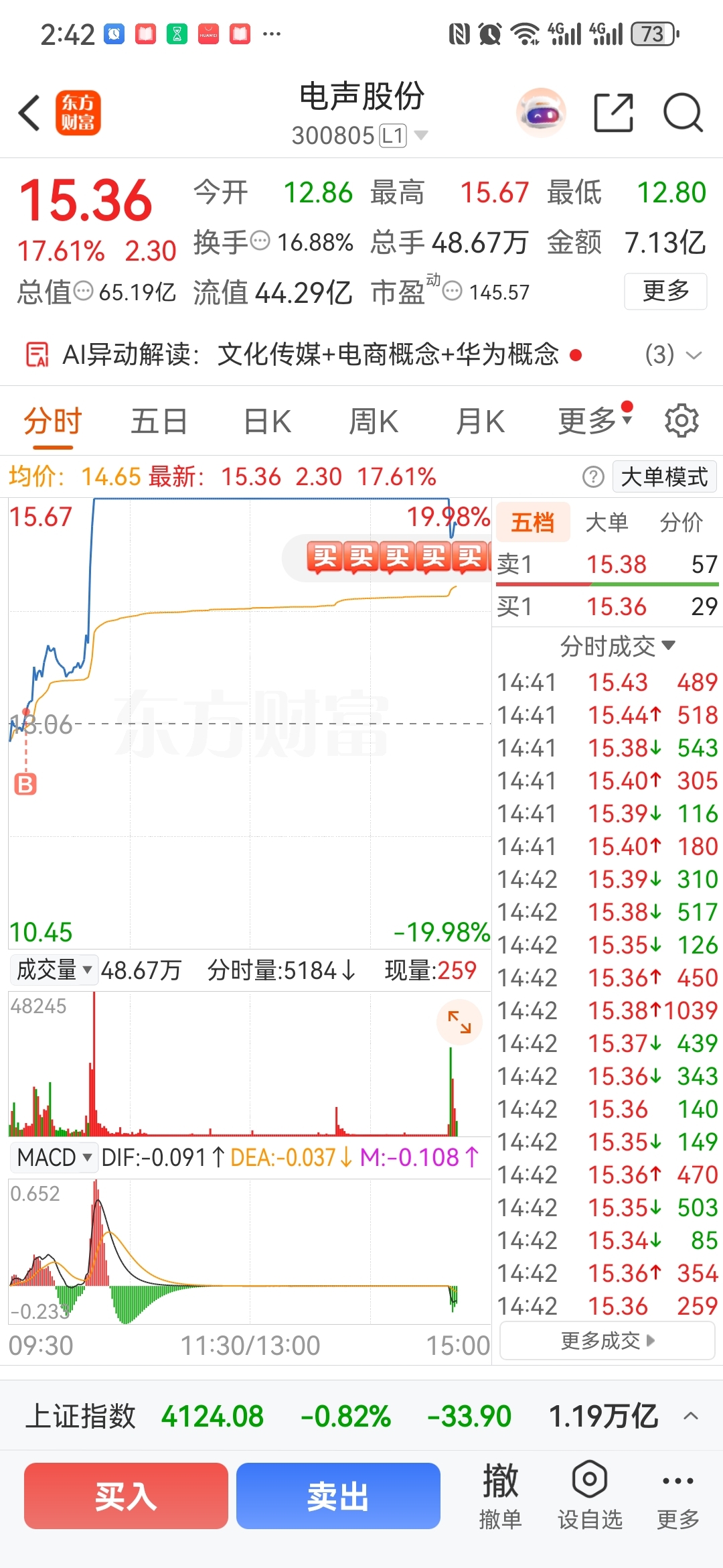 $电声股份(SZ300805)$ 拿住了兄弟们