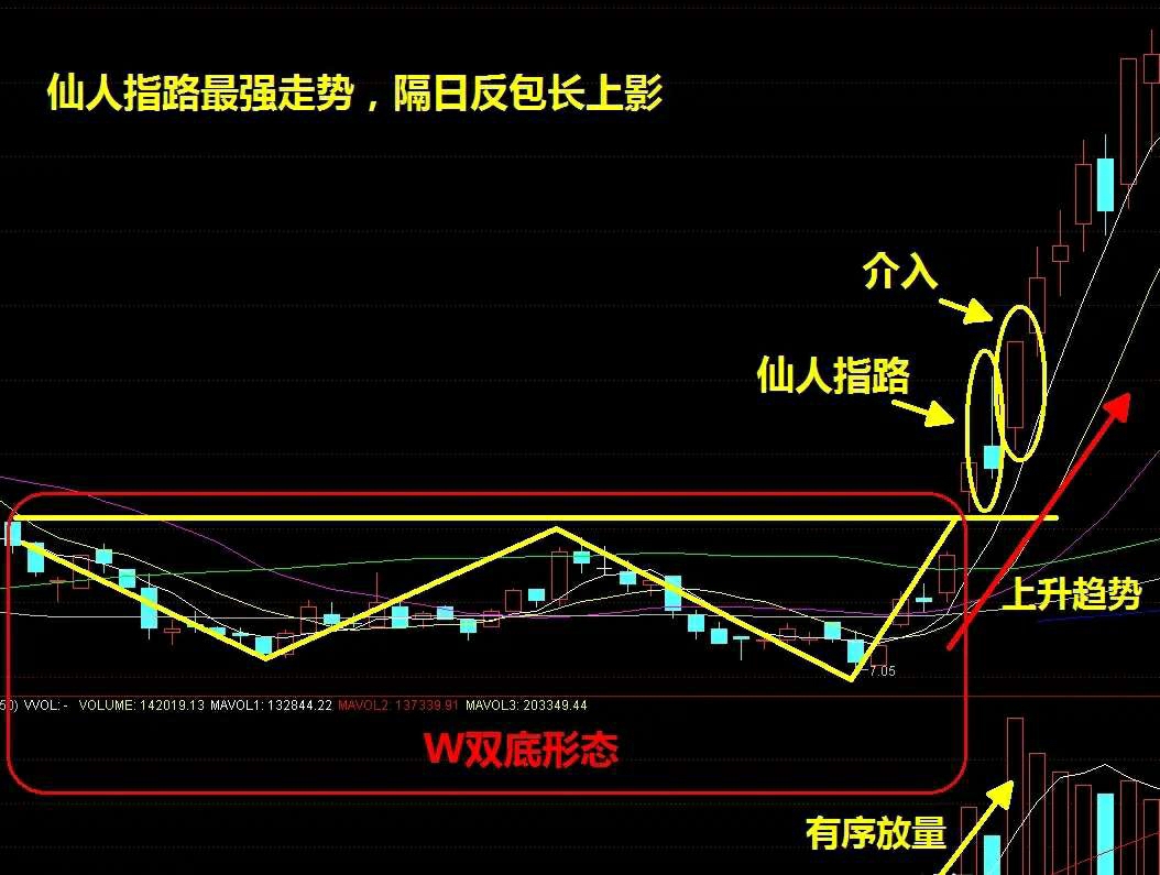 1. 看趋势:仙人指路出现在上升趋势或底部反转结构(W底、头肩底)中,才是有效信号;下跌趋势中的一律为陷阱。