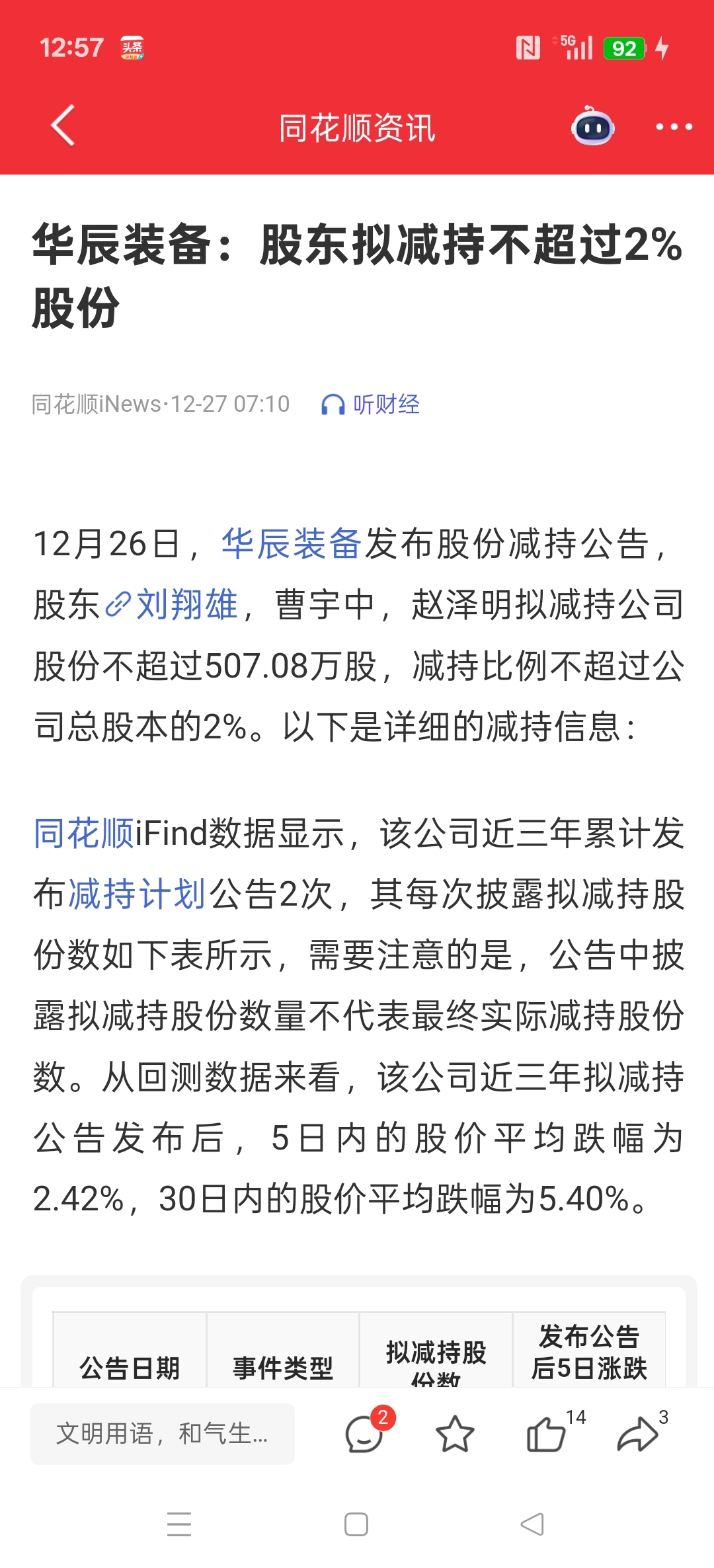 $华辰装备(SZ300809)$