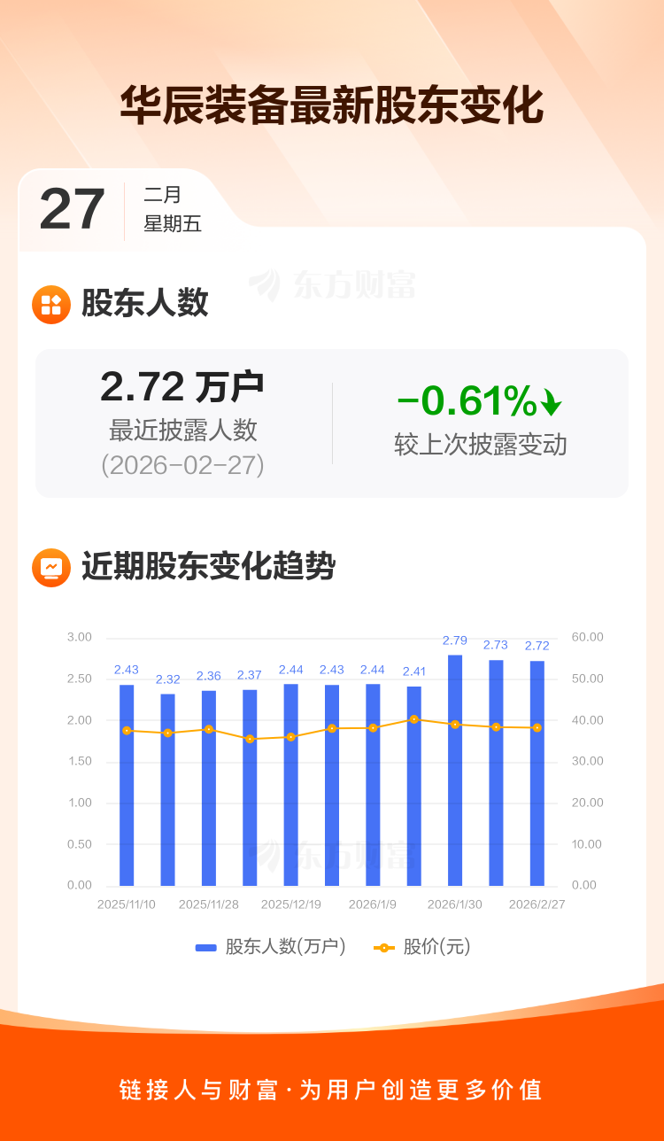 华辰装备:截至2月27日最新股东户数2.72万户,较上期减少0.61%
