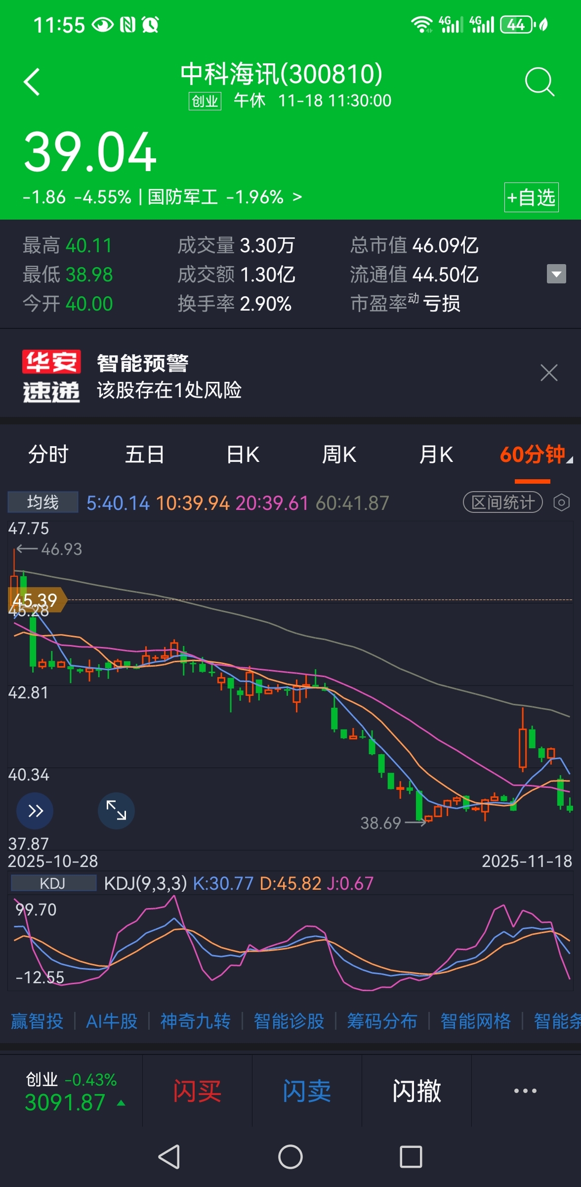 $中科海讯(SZ300810)$ 小时级别的岛形反转,昨天卖了盈利的是对的