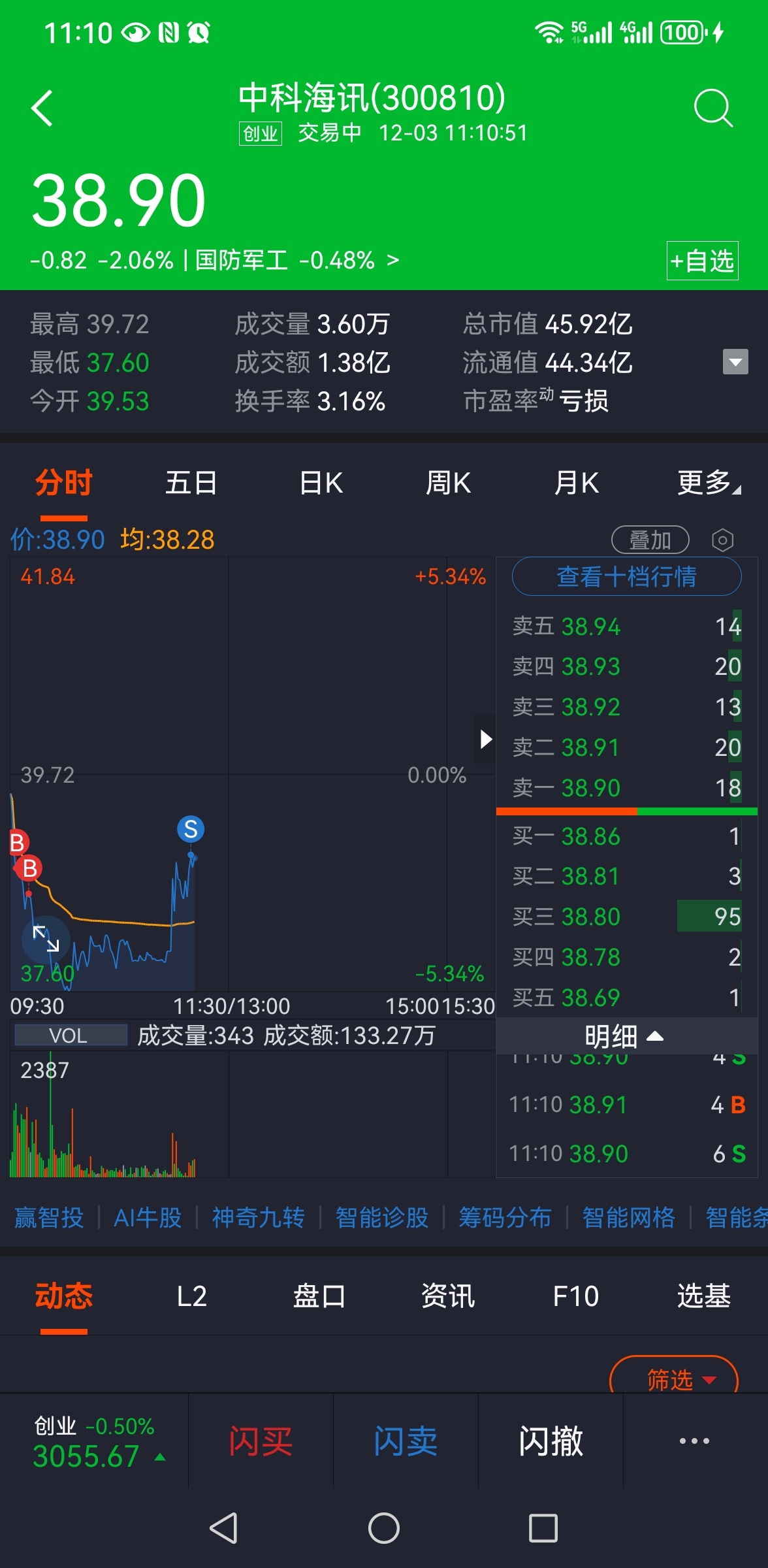 $中科海讯(SZ300810)$ t了一个饭钱,今天结束