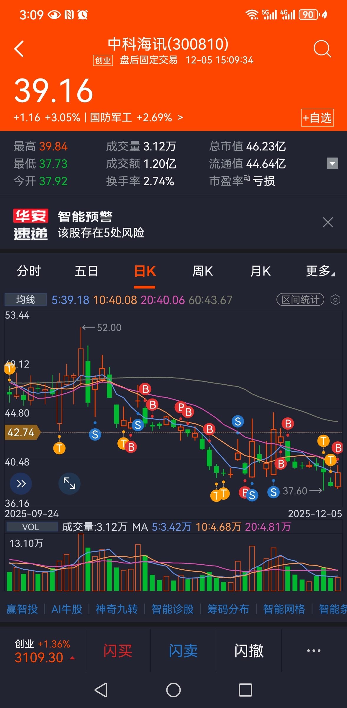 $中科海讯(SZ300810)$ 从65降到40,仓位回到最开始的三分之二,真够累的,希望这次反弹给力点